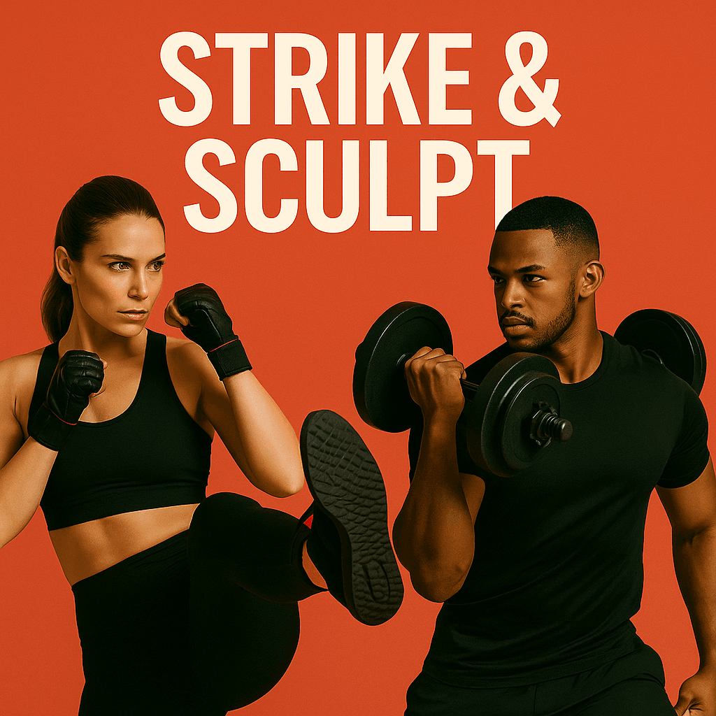 Strike & Sculpt fuses strength training with cardio kickboxing for a total-body workout. Build power with weights, then unleash energy with controlled striking combos. It’s the perfect blend of tone, cardio, and skill-building for all fitness levels.
